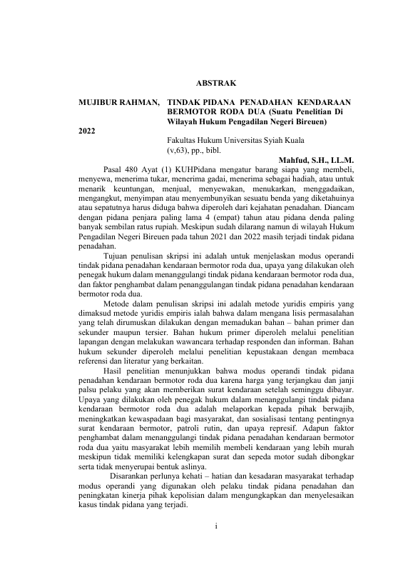 Baca Juga : TINDAK PIDANA PENADAHAN KENDARAAN BECAK BERMOTOR (SUATU PENELITIAN DI WILAYAH HUKUM PENGADILAN NEGERI BIREUEN) (ASHABULYAMIN, 2022)