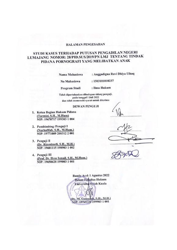 Baca Juga : STUDI KASUS PUTUSAN PENGADILAN NEGERI MARTAPURA NOMOR 307/PID.B/2020/PN MTP TENTANG TINDAK PIDANA EKSPLOITASI SEKSUAL YANG BERMUATAN PORNOGRAFI (Rifki Subahansyah, 2022)