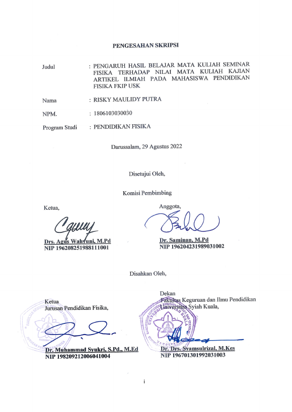 Baca Juga : KORELASI NILAI MATA KULIAH STRATEGI BELAJAR MENGAJAR (SBM) DAN EVALUASI PENGAJARAN FISIKA (EPF) DENGAN NILAI MATA KULIAH PERENCANAAN PENGAJARAN FISIKA (PPF) PADA MAHASISWA JURUSAN FISIKA FKIP UNSYIAH ANGKATAN 2014 (Sri Ulina, 2018)