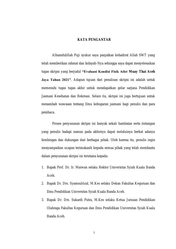 IRFANDI, EVALUASI KONDISI FISIK ATLET MUAY THAI ACEH JAYA TAHUN 2021. Banda Aceh Fakultas Keguruan dan Ilmu Pendidikan,2022