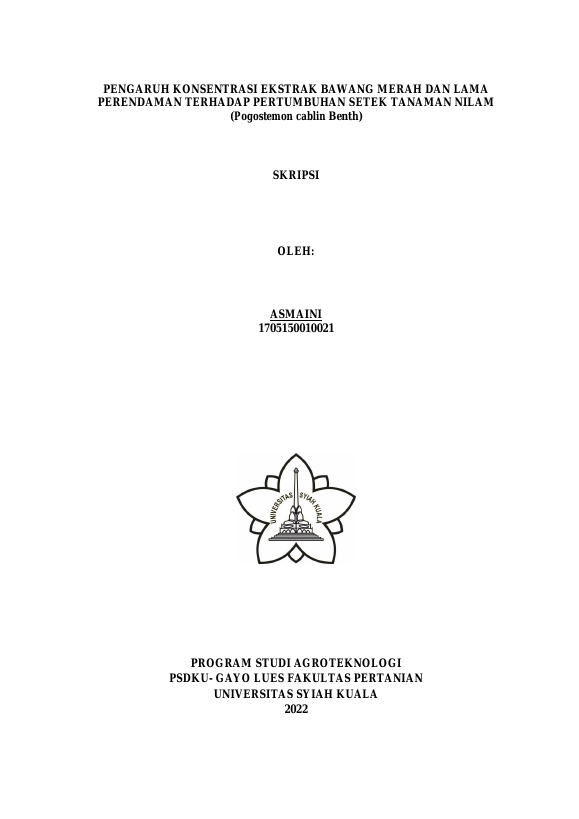 Baca Juga : PENGARUH KONSENTRASI ZAT PENGATUR TUMBUH ALAMI EKSTRAK BAWANG MERAH (ALLIUM CEPA L.) TERHADAP DUA VARIETAS NILAM (POGOSTEMON CABLIN BENTH.) (HIZBUL WATHAN, 2021)