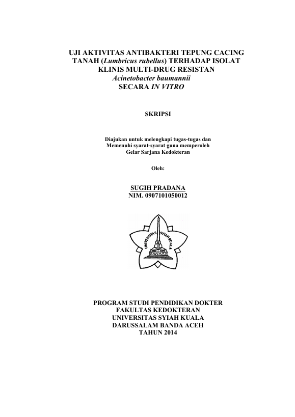 Baca Juga : UJI AKTIVITAS ANTIBAKTERI TEPUNG CACING TANAH (LUMBRICUS RUBELLUS) TERHADAP ISOLAT KLINIS MULTIDRUG-RESISTANT PSEUDOMONAS AERUGINOSA SECARA IN VITRO (RISNA OKTAVIA, 2015)