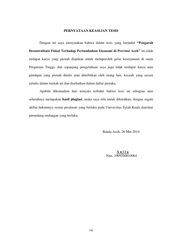 Anita , PENGARUH DESENTRALIS FISKAL TERHADAP PERTUMBUHAN EKONOMI DI PROVINSI ACEH. Banda Aceh Program Pasca Sarjana Universitas Syiah Kuala,2014