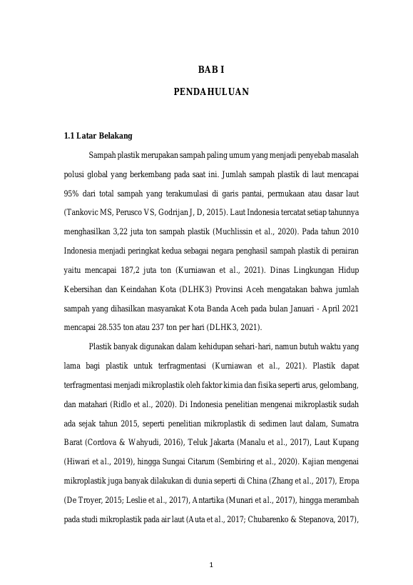 VEBYANA NOVI ERMANDA, KELIMPAHAN MIKROPLASTIK PADA SEDIMEN DI PERAIRAN PASIE LAM TOUNG, KABUPATEN ACEH BESAR. Banda Aceh Fakulta Kelautan dan Perikanan,2022