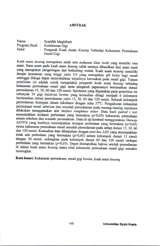 Baca Juga : PENGARUH KUAH ASAM KEUENG TERHADAP KEKASARAN PERMUKAAN EMAAIL GIGI (Syarifah Maghfirah, 2022)