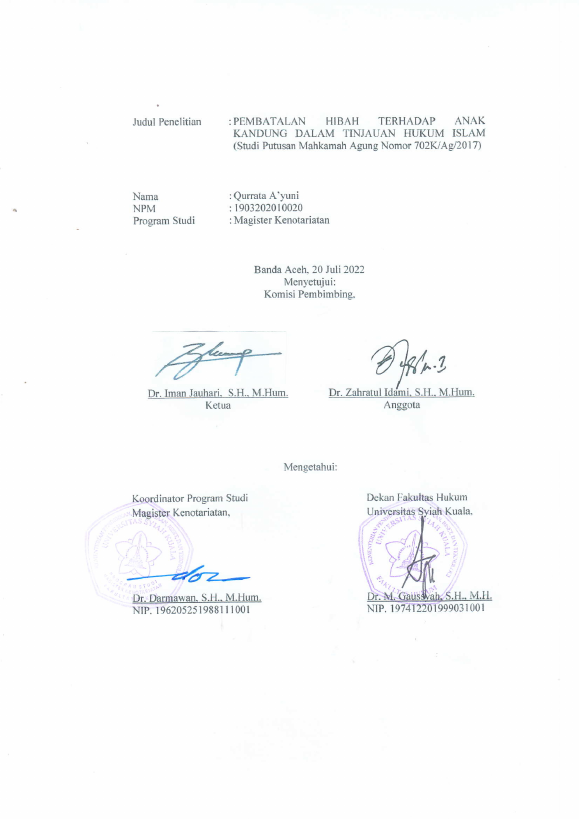 Baca Juga : STUDI KASUS PUTUSAN MAHKAMAH SYARIAH ACEH NOMOR 55/PDT.G/2012/MS-ACEH TENTANG PEMBATALAN HIBAH KEPADA ANAK ANGKAT (YASMEEN AZKIYA, 2016)