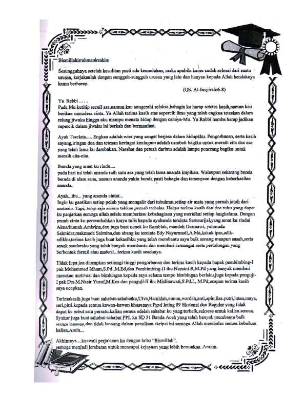 Baca Juga : KEMAMPUAN MENULIS KARANGAN BERDASARKAN PENGALAMAN PADA SISWA KELAS V SDN 31 BANDA ACEH (Pipit Candrawati, 2014)