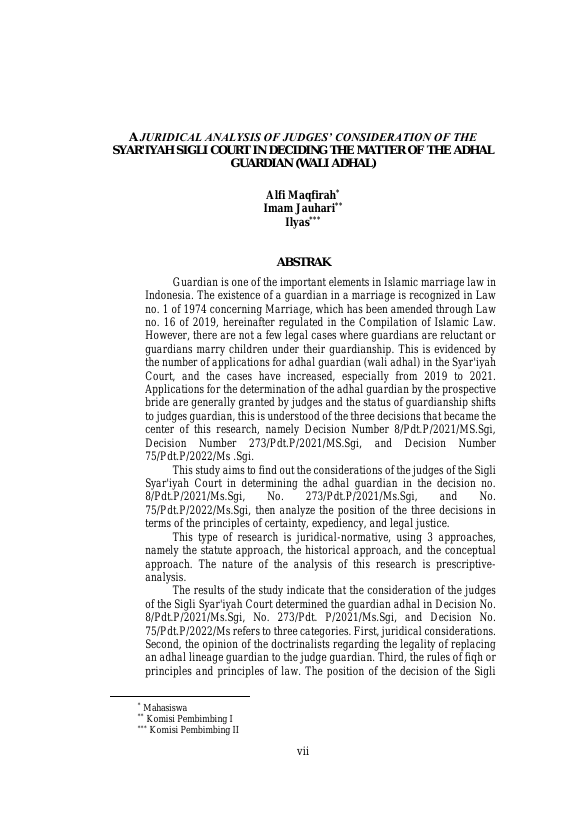 Baca Juga : PERMOHONAN PENETAPAN WALI HAKIM DI MAHKAMAH RNSYAR’IYAH JANTHORN(SUATU PENELITIAN DI KABUPATEN ACEH BESAR) (KHAIRUN NISA, 2015)