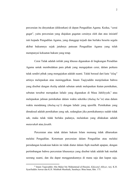 HANIFUL HUDA, STATUS HUKUM TALAK DI LUAR PENGADILAN MENURUT HUKUM POSITIF DI INDONESIA. Banda Aceh Fakultas Hukum Universitas Syiah Kuala,2022