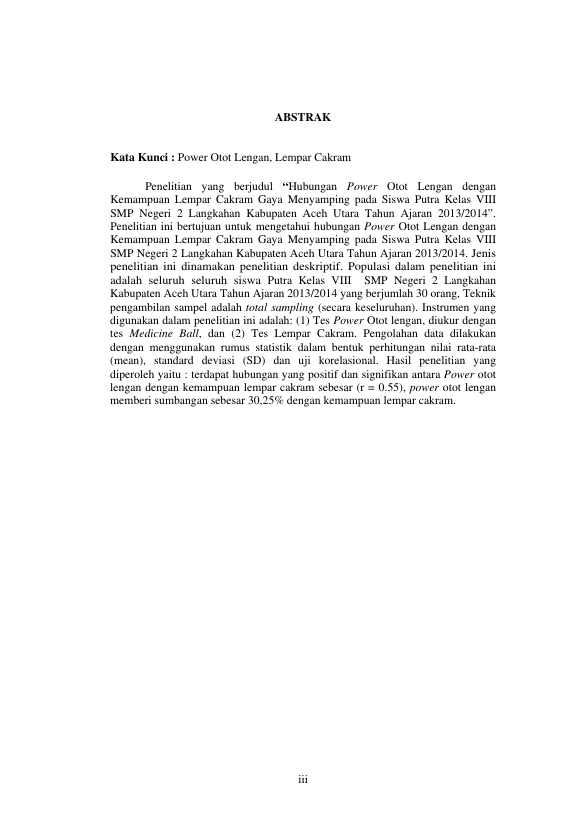 Baca Juga : HUBUNGAN PANJANG LENGAN TERHADAP KEMAMPUAN LEMPAR CAKRAM PADA SISWA SMA NEGERI 1 KARANG BARU KABUPATEN ACEH TAMIANG TAHUN AJARAN 2013/2014 (Saiyah, 2015)