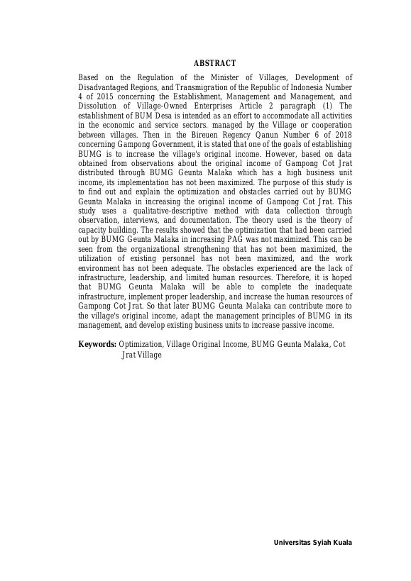 Baca Juga : USAHA-USAHA PEMERINTAH GAMPONG DALAM PENGEMBANGAN BUMG DI GAMPONG LAMSITEH KABUPATEN ACEH BESAR (Radiyati, 2020)
