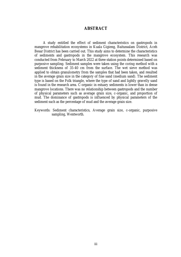 Baca Juga : KEANEKARAGAMAN MAKROZOOBENTHOS DAN ANALISIS SUBSTRAT DI KAWASAN REHABILITASI MANGROVE DAN NON-REHABILITASI MANGROVE ACEH BESAR DAN BANDA ACEH (MUHAMMAD KHATAMI, 2022)