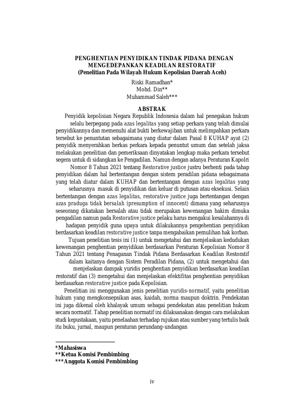 Baca Juga : PENGHENTIAN PENYIDIKAN TINDAK PIDANA DENGAN MENGEDEPANKAN KEADILAN RESTORATIFRN(PENELITIAN PADA WILAYAH HUKUM KEPOLISIAN DAERAH ACEH) (Riski Ramadhan, 2022)