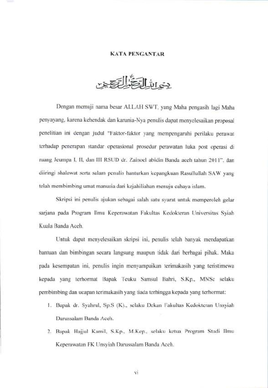 Fitri ZA, FAKTOR-FAKTOR YANG MEMPENGARUHI PERILAKU PERAWAT TERHADAP PENERAPAN STANDAR OPERASIONAL PROSEDUR PERAWATAN LUKA POST OPERASI DI RUANG RAWAT INAP BEDAH RSUD DR. ZAINOEL ABIDIN BANDA ACEHRNTAHUN 2011. Banda Aceh Fakultas Kedokteran,