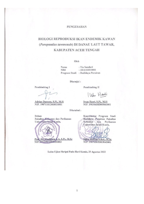Baca Juga : BIOLOGI REPRODUKSI IKAN ENDEMIK KAWAN (POROPUNTIUS TAWARENSIS) DI DANAU LAUT TAWAR, KABUPATEN ACEH TENGAH (Tia Sundari, 2022)
