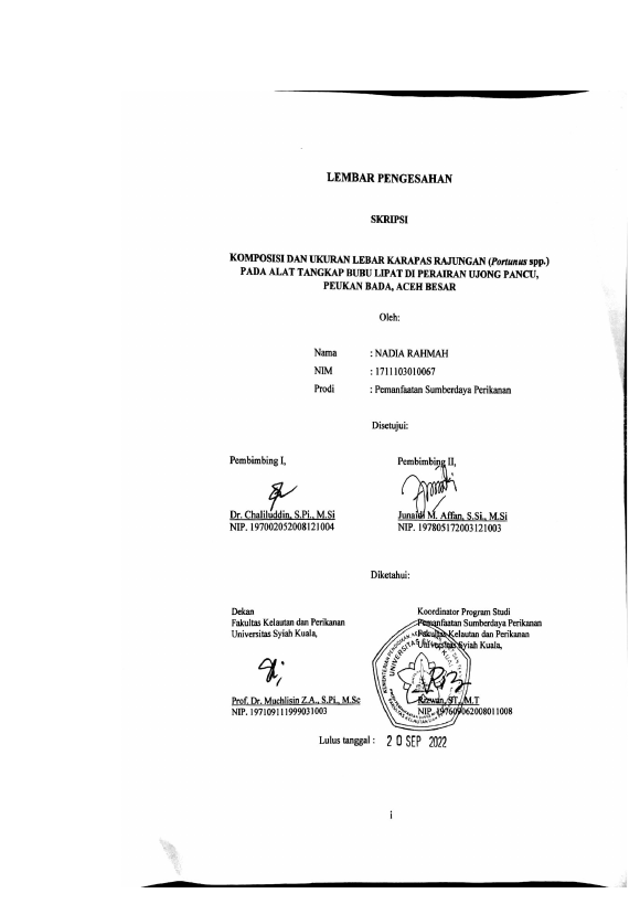 Baca Juga : KOMPOSISI JENIS HASIL TANGKAPAN BUBU LIPAT DI DESA LANCANG, JEUNIEB, KABUPATEN BIREUEN (Sarah Nadia Vonna, 2023)