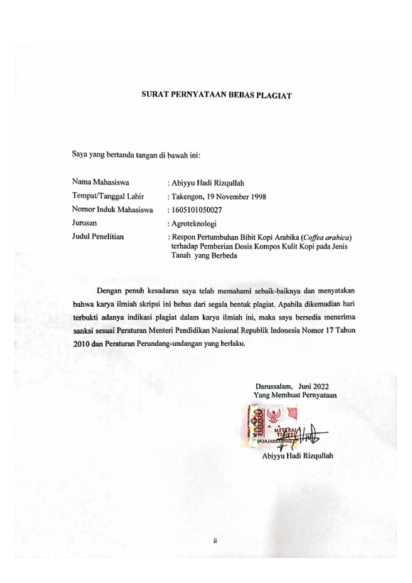 Baca Juga : RESPON PERTUMBUHAN BIBIT KOPI ARABIKA (COFFEA ARABICA) TERHADAP PEMBERIAN DOSIS KOMPOS KULIT KOPI PADA JENIS TANAH YANG BERBEDA (Abiyyu Hadi Rizqullah, 2022)