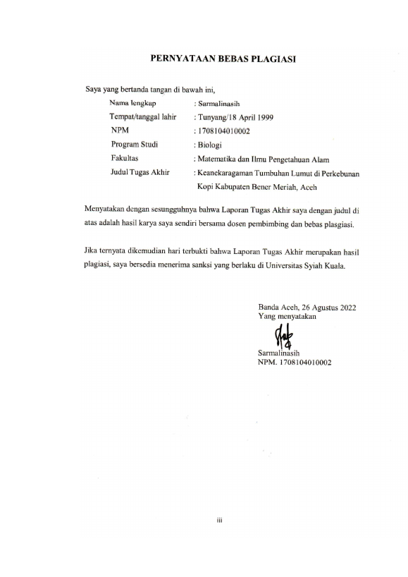 Baca Juga : INVENTARISASI LUMUT KERAK (LICHENES) DI PERKEBUNAN KOPI DESA JAMUR ULUH KABUPATEN BENER MERIAH (Juprika Wulan Dari, 2022)