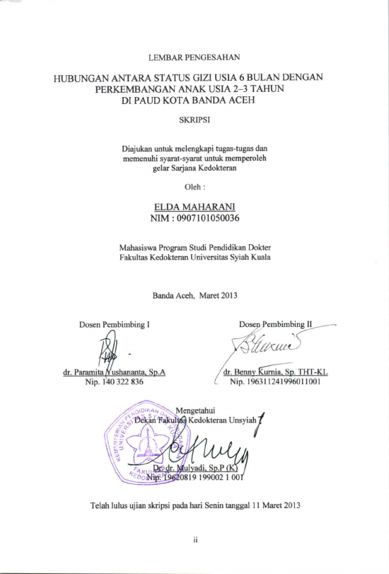 Baca Juga : HUBUNGAN STATUS GIZI TERHADAP PERKEMBANGAN BALITA DI PAUD KASIH IBU LAMTEH KECAMATAN ULEE KARENG KOTA BANDA ACEH (Rizka Varia, S.Ked, 2015)