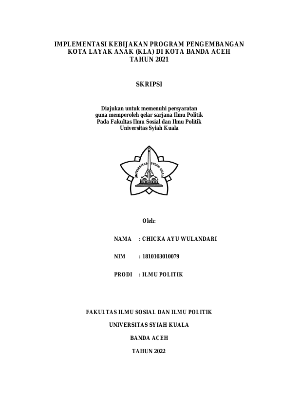 Baca Juga : IMPLEMENTASI KEBIJAKAN KOTA LAYAK ANAK DI KOTA BANDA ACEH (TINJAUAN QANUN NOMOR 2 TAHUN 2021) (Indah Putri Sanura, 2023)