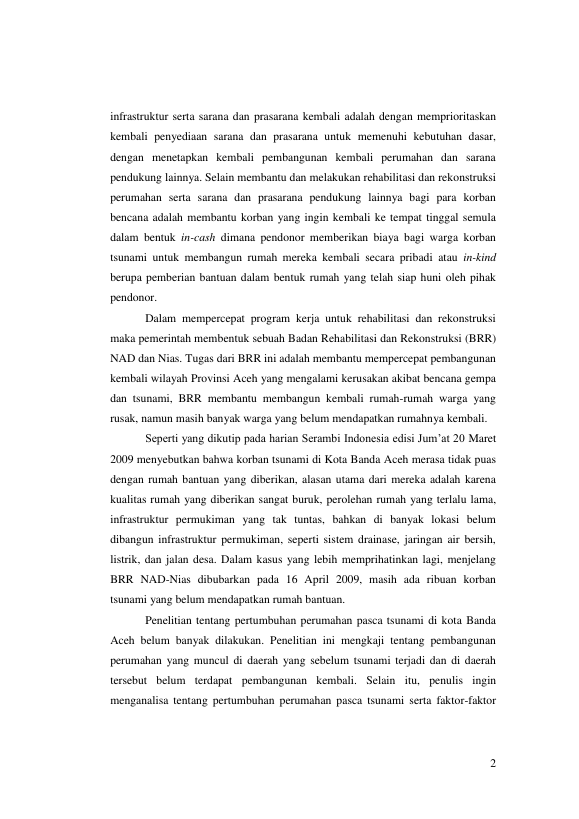 Julfan Chaliz, ANALISA PERKEMBANGAN PERUMAHAN PASCA TSUNAMI DI KOTA BANDA ACEH (STUDI KASUS DI DESA ALUE DEAH TENGOH DAN DESA LAMBUNG KECAMATAN MEURAXA). Banda Aceh Fakultas Matematika dan Ilmu Pengetahuan Alam,2014