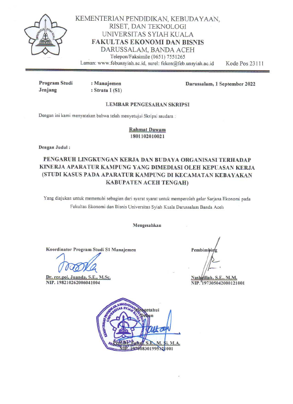 Baca Juga : PENGARUH PERUBAHAN ORGANISASI DAN BUDAYA ORGANISASI TERHADAP KEPUASAN KERJA DAN DAMPAKNYA PADA KINERJA PEGAWAI DINAS PEKERJAAN UMUM DAN PENATAAN RUANG (PUPR) KABUPATEN PIDIE (NEZA ROZANNA, 2019)