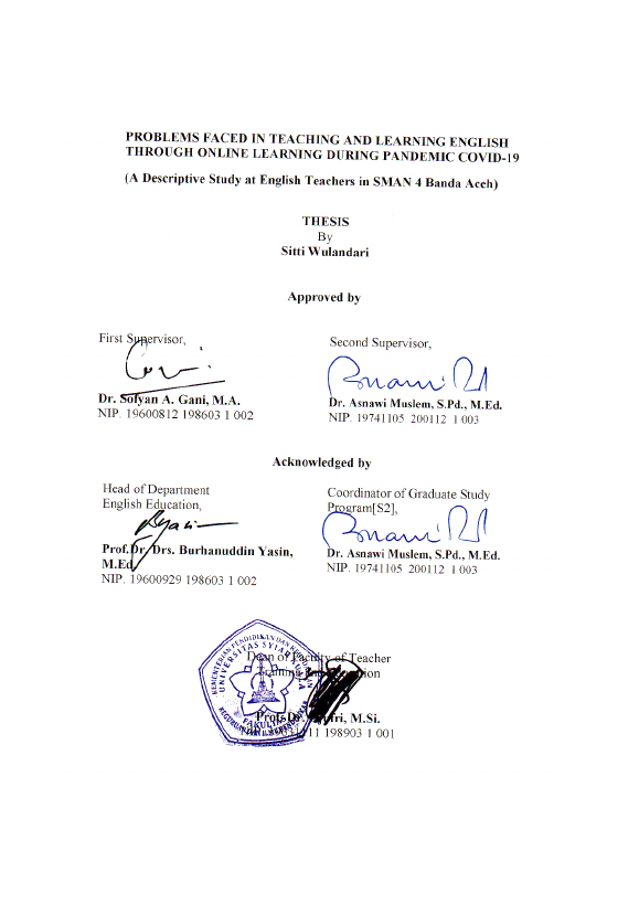 Baca Juga : TEACHERS’ PERCEPTIONS AND BARRIERS TOWARD ENGLISH LANGUAGE TEACHING AND LEARNING PROCESS VIA ONLINE LEARNING DURING COVID-19 (A SURVEY AT SENIOR HIGH SCHOOL IN BANDA ACEH AND ACEH BESAR) (Cut Meurak Bulan Aflah Aksyah, 2021)