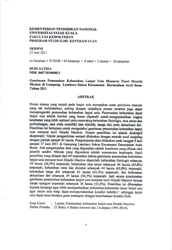 Baca Juga : HUBUNGAN PERSEPSI KELUARGA DENGAN PEMENUHAN KEBUTUHAN DASAR LANSIA MENURUT TEORI HIRARKI KEBUTUHAN MASLOW DI KELURAHAN LAKSANA KECAMATAN KUTA ALAM BANDA ACEH TAHUN 2007 (Andri Juanda, 2022)