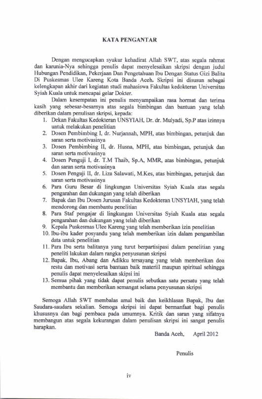 Muhammad Zia, HUBUNGAN PENDIDIKAN, PEKERJAAN DAN PENGETAHUAN IBU DENGAN STATUS GIZI BALITA DI PUSKESMAS ULEE KARENG KOTA BANDA ACEH. Banda Aceh Fakultas Kedokteran,