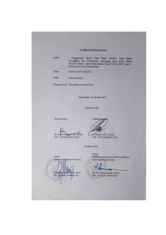 FAIN KAANA REZEKI, PENGGUNAAN MEDIA RODA PINTAR (ROPIN) PADA MATERI KEUNGGULAN DAN KETERBATASAN ANTAR RUANG SERTA PERAN PELAKU EKONOMI DALAM SUATU PEREKONOMIAN KELAS VIII DI SMP NEGERI 1 SIMPANG KIRI KOTA SUBULUSSALAM. Banda Aceh Fakultas KIP Pendidikan Ekonomi,2022