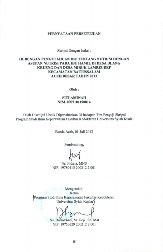 Baca Juga : HUBUNGAN PENGETAHUAN IBU TENTANG NUTRISI DENGAN ASUPAN NUTRISI PADA IBU HAMIL DI DESA BLANG KRUENG DAN DESA MIRUK LAMREUDEP KECAMATAN BAITUSSALAM ACEH BESAR TAHUN 2013 (Siti aminah, 2022)