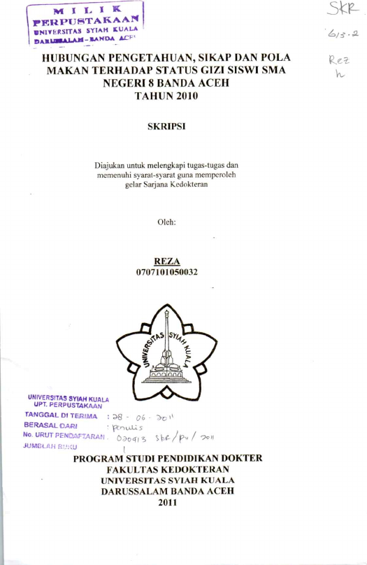 Baca Juga : HUBUNGAN ANTARA PENGETAHUAN GIZI DAN POLA MAKAN DENGAN STATUS GIZI MAHASISWA KEDOKTERAN UNIVERSITAS SYIAH KUALA BANDA ACEH (Samawi Husien Ramud, 2015)
