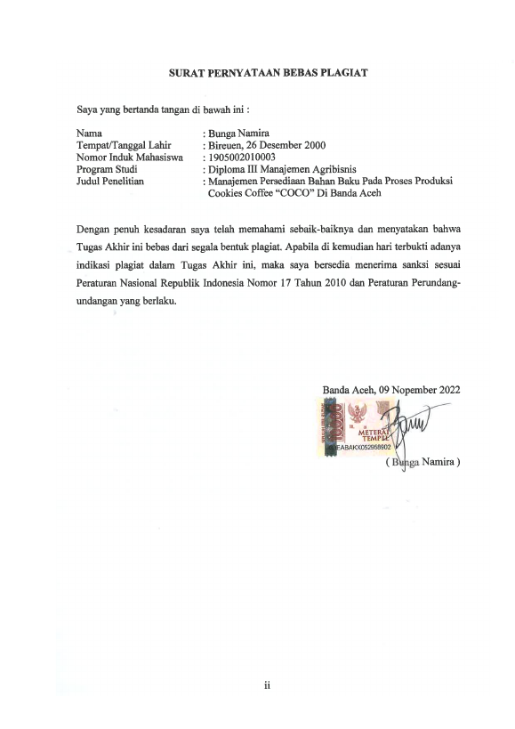 Baca Juga : MANAJEMEN PRODUKSI PEMBUATAN PRODUK COOKIES COFFEE “COCO” DI BANDA ACEH (Tasya Humaira, 2022)