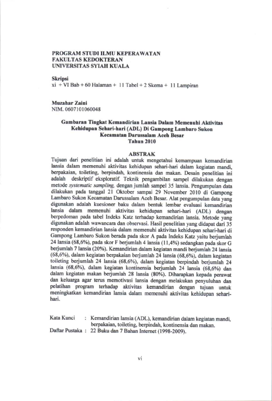Baca Juga : GAMBARAN KEMANDIRIAN LANSIA DALAM PEMENUHAN INSTRUMENTAL ACTIVITY OF DAILY LIVING (ADL) DI GAMPONG LAMBARO SUKON KECAMATAN DARUSSALAM ACEH BESAR TAHUN 2011 (Mukhlis, 2022)