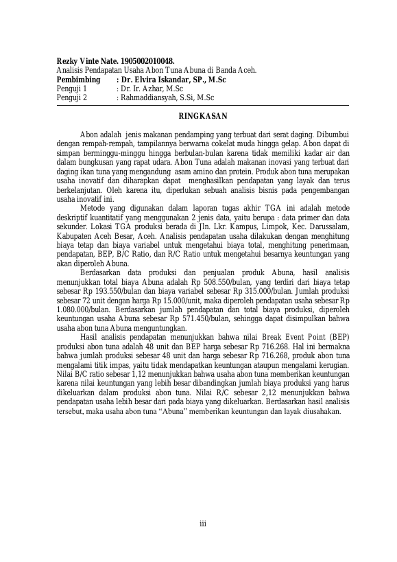 Baca Juga : ANALISIS PENDAPATAN ABON IKAN TUNA (THUNNUS SP) PADA HOME INDUSTRI UD. THUNNUS SAPUTRA KOTA BANDA ACEH (Sapariosatria, 2021)