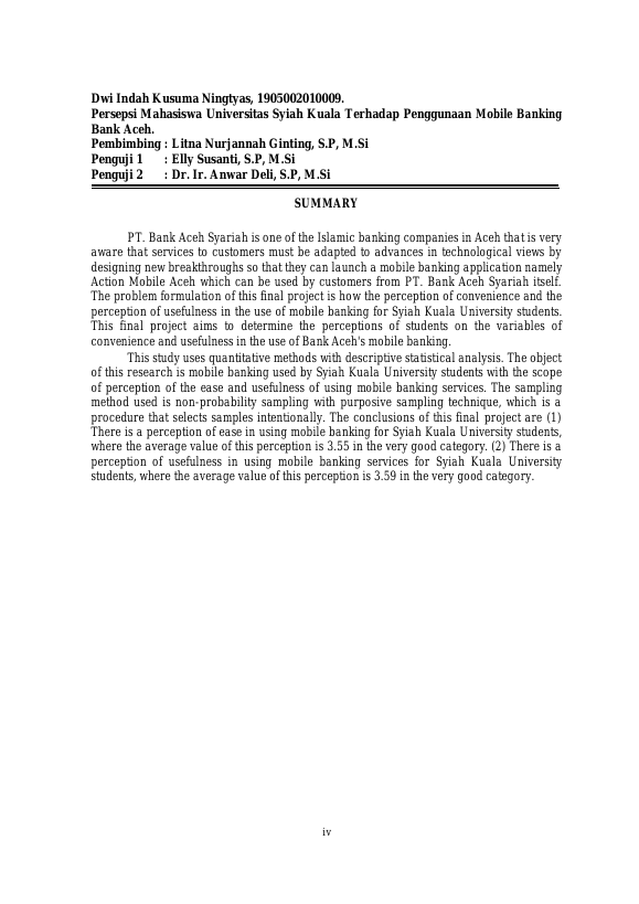 Dwi Indah Kusuma Ningtyas, PERSEPSI MAHASISWA UNIVERSITAS SYIAH KUALA TERHADAP PENGGUNAAN MOBILE BANKING BANK ACEH SYARIAH. Banda Aceh PROGRAM STUDI MANAJEMEN AGRIBISNIS PROGRAM DIPLOMA III PERTANIAN,2022