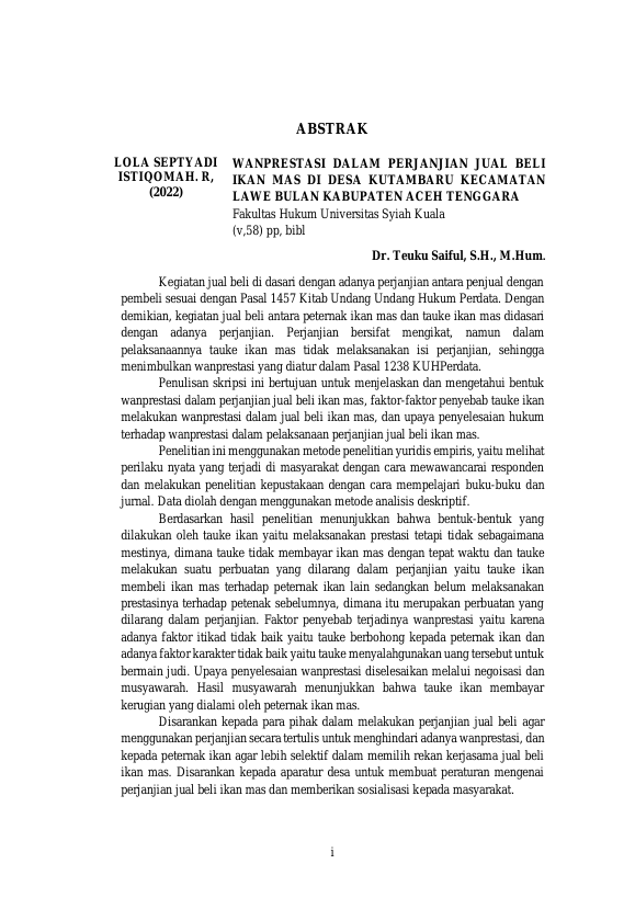 Baca Juga : WANPRESTASI DALAM PERJANJIAN JUAL BELI TANAH SECARA LISAN (SUATU PENELITIAN DI KECAMATAN ULIM KABUPATEN PIDIE JAYA) (AIDA FITRIA, 2025)
