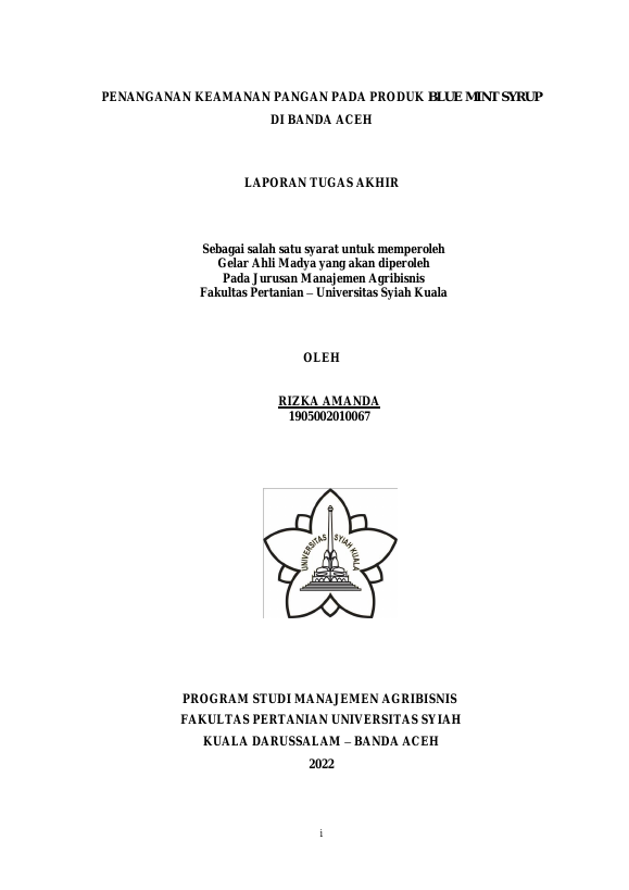 Baca Juga : PENANGANAN KEAMANAN PANGAN PADA PRODUK BLUE MINT SYRUP DI BANDA ACEH (Rizka Amanda, 2022)