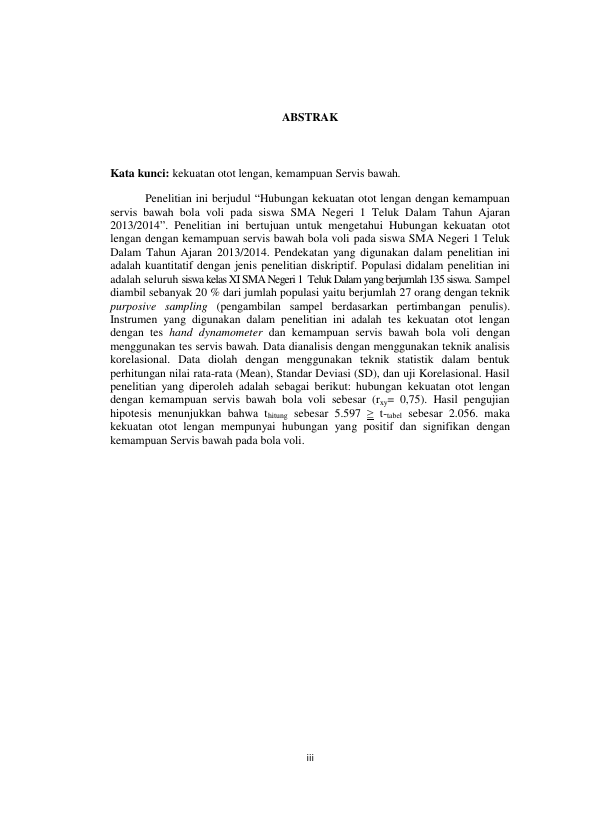 Baca Juga : HUBUNGAN POWER OTOT LENGAN TERHADAP KEMAMPUAN SERVIS BAWAH PADA PERMAINAN BOLA VOLI SISWA KELAS VIII SMPN 2 TANAH JAMBO AYE ACEH UTARA TAHUN AJARAN 2013/2014 (Muhammad Jafar, 2014)