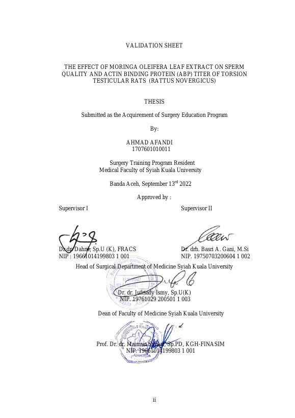Baca Juga : EFFECT OF MORINGA OLEIFERA L EXTRACT ON SPERM QUALITY AND TESTIS ACTIN BINDING PROTEIN (ABP) TITER OF DYSLIPIDEMIC ALBINO RATS (RATTUS NOVERGICUS) (dr. Rudi Haris Munandar, 2022)