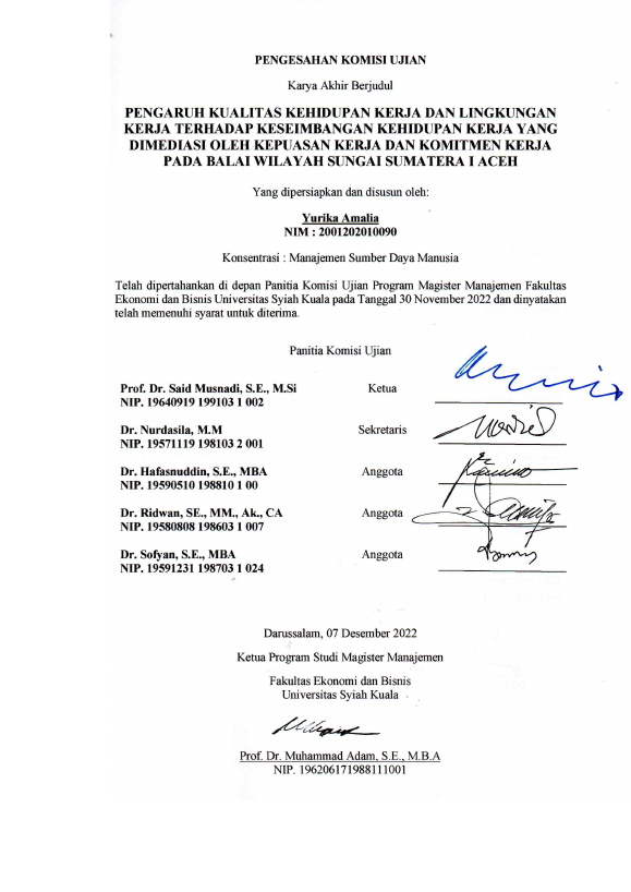 Baca Juga : PENGARUH KULAITAS KEHIDUAN KERJA TERHADAP KESEIMBANGAN KEHIDUPAN KERJA DENGAN KEPUASAN KERJA DAN KOMITMEN KERJA SEBGAI PEMEDIASI PADA KARYAWAN PT ANGKASA PURA II DI ACEH (ZULFIKRI, 2022)