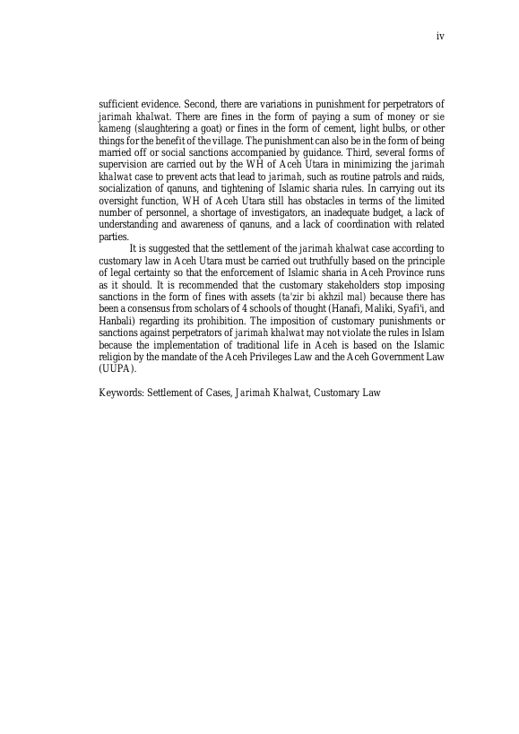 Baca Juga : PENYELESAIAN JARIMAH KHALWAT SECARA ADAT DI KOTA LHOKSEUMAWE (Rizky Nadara, 2018)