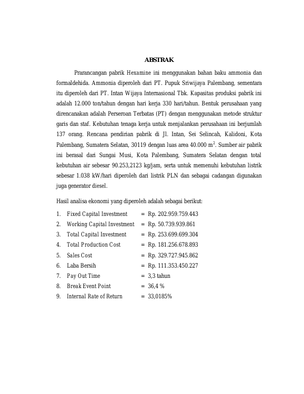 Baca Juga : PRARANCANGAN PABRIK RESIN FENOL FORMALDEHID DENGAN KAPASITAS 19.000 TON/TAHUN (GEUBRINA RISKY FAJRIA, 2021)