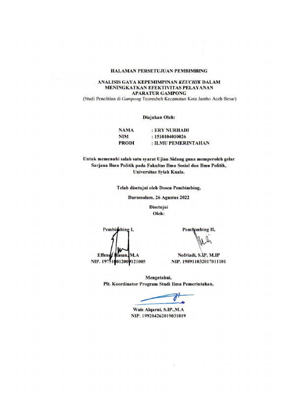 Baca Juga : PENGARUH GAYA KEPEMIMPINAN KEUCHIK TERHADAP EFEKTIFITAS PELAYANAN RASKIN KEPADA MASYARAKAT GAMPONG RUKOH (STUDI PERBANDINGAN KEPEMIMPINAN KEUCHIK PERIODE 2010-2015 DAN KEUCHIK PERIODE 2015-2020) (Eri Nurlianti, 2017)