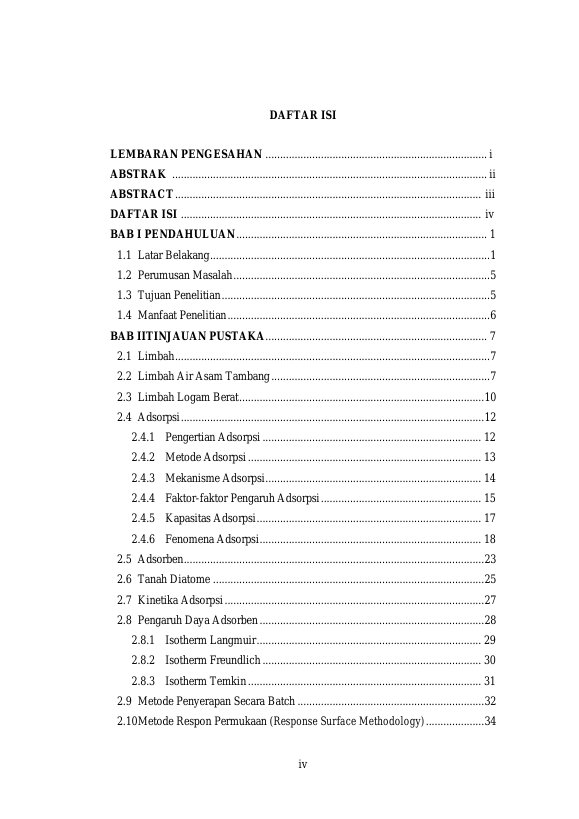 Dalsup, OPTIMASI PROSES PENYERAPAN MANGAN DARI AIR ASAM TAMBANG SINTETIS MENGGUNAKAN TANAH DIATOME. Banda Aceh Prog. Studi Magister Teknik Kimia,2022