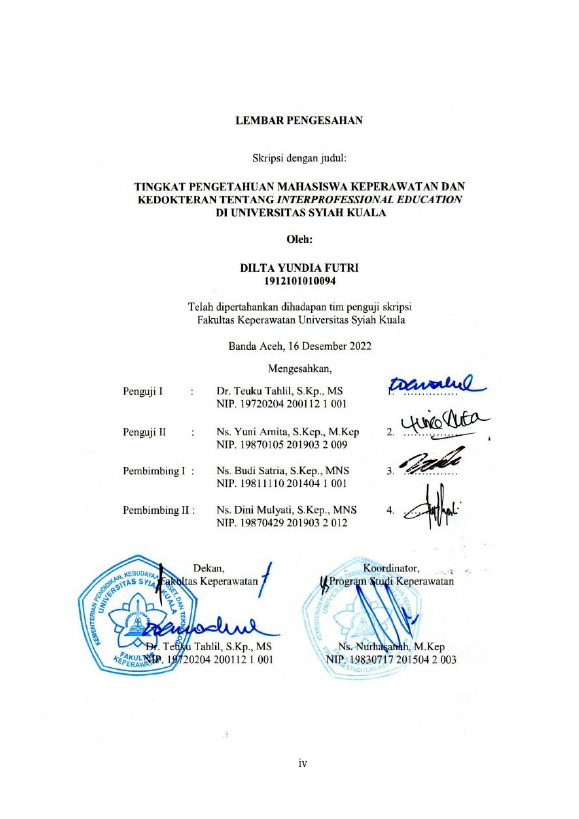 Baca Juga : PERSEPSI MAHASISWA KEPERAWATAN DAN KEDOKTERAN TENTANG INTERPROFESSIONAL EDUCATION DI UNIVERSITAS SYIAH KUALA BANDA ACEH (Muhammad Zubaili, 2021)