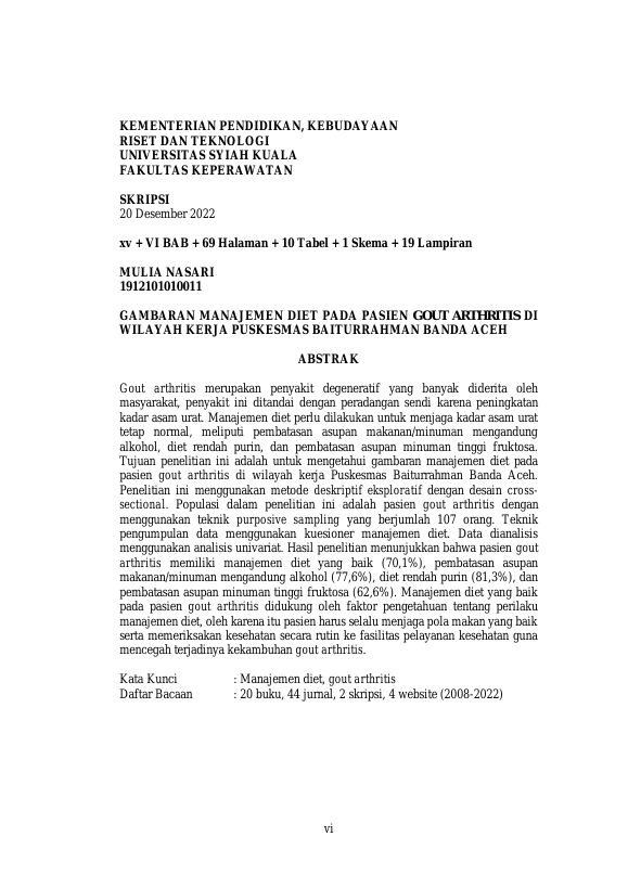 Baca Juga : HUBUNGAN DUKUNGAN KELUARGA TERHADAP MANAJEMEN DIET RENDAH PURIN PADA PASIEN GOUT ARTHRITIS DI WILAYAH KERJA PUSKESMAS KUTA ALAM KOTA BANDA ACEH (NITA FARADILLA, 2025)
