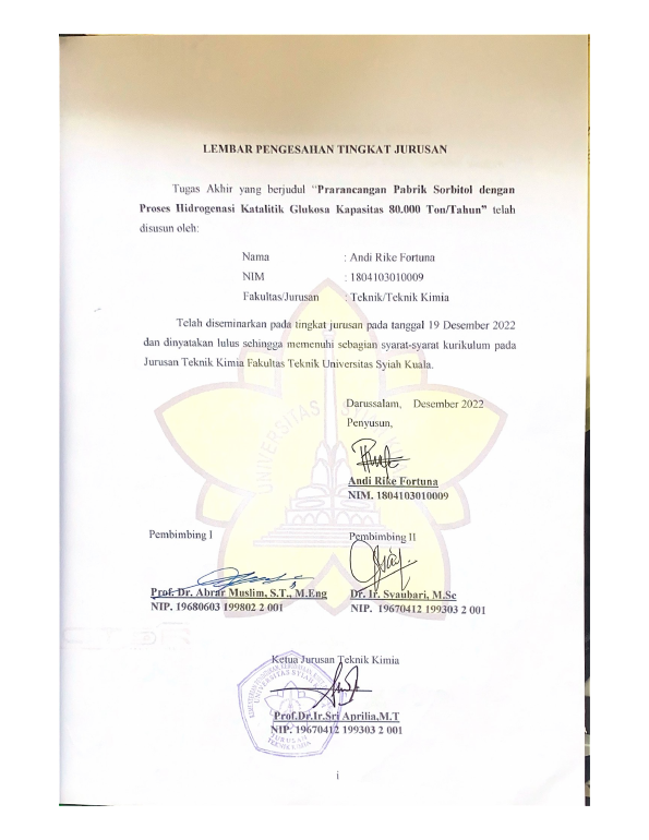 Baca Juga : PRARANCANGAN PABRIK SORBITOL DENGAN PROSES HIDROGENASI KATALITIK GLUKOSA KAPASITAS PRODUKSI 80.000 TON/TAHUN (Andi Rike Fortuna, 2022)