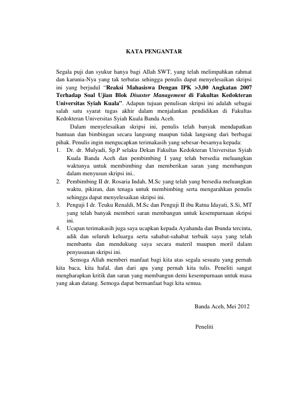 Baca Juga : REAKSI MAHASIWA KURANG PINTAR ANGKATAN 2007 TERHADAP SOAL UJIAN BLOK DISASTER MANAGEMENT DI FAKULTAS KEDOKTERAN UNIVERSITAS SYIAH KUALA (syarifah wardah, 2015)