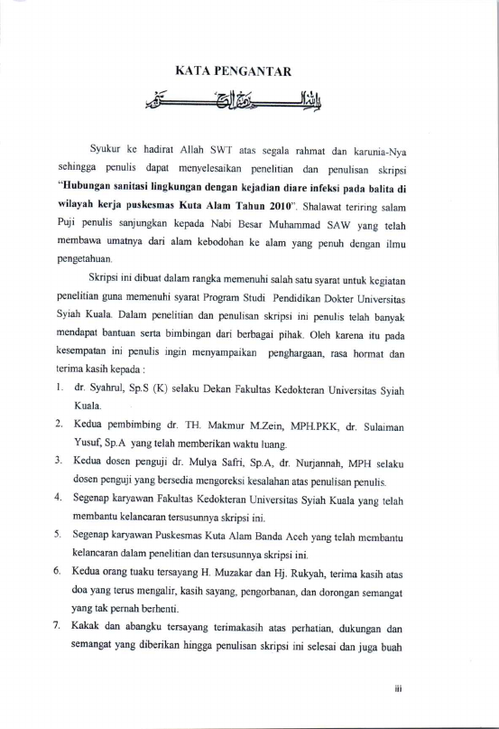 fitria nurvia, HUBUNGAN SANITASI LINGKUNGAN DENGAN KEJADIAN DIARE KARENA INFEKSI PADA BALITA DI WILAYAH KERJA PUSKESMAS KUTA ALAM TAHUN 2010. Banda Aceh Fakultas Kedokteran,